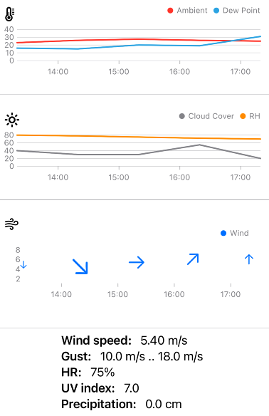 Lokate imports weather data from Apple Weather when an assignment is reviewed. If no weather data is attached, it is downloaded, and internal storage is updated. This process ensures that outdated data, even from weeks or years ago, is refreshed. Note that Apple Weather has limitations and may not always provide historical data. Additionally, coverage and accuracy may vary by location. In wilderness areas, wind direction reported by Apple Weather can differ significantly from actual conditions on the ground. Wind direction and, to some extent, wind speed should be considered averages over a large area. Natural features like mountains can affect your specific observations.